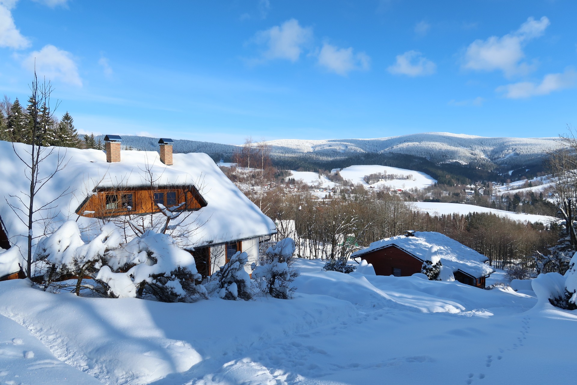 Z našeho apartmánu budete mít ten nejhezčí výhled přímo na Velkou Deštnou, sjezdovky i celé údolí Deštného v Orlických horách.